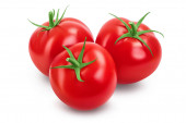 Pomidor z plastrami izolowanymi na białym tle ze ścieżką wycinania i pełną głębią pola. Zestaw lub kolekcja