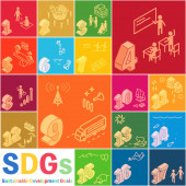 SDGs, 17 goli kwadratowych ikon, wersja czarno-biała