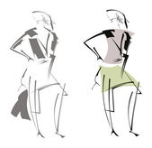 ładny nowoczesnej dziewczyny. szkic moda. widok z boku.