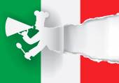 Włoska kuchnia regionalna tło, kwadratowy banner.Zerwana sylwetka szefa kuchni papierowej z zbirami w górę i flagi włoskiej. Miejsce na tekst lub obraz. Dostępny wektor.