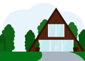 Ilustracja domu z prostym stylu dziecinnym. Izolacja na białym tle.