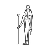 Zdjęcie "Animacja portret Starożytna egipska bogini Bastet (Bast) posiada symbole władzy: laskę i krzyż. Święta kota. Widok profilu. Ilustracja wektora odizolowana na białym tle. Druk, plakat" może być wykorzystywane do celów osobistych i komercyjnych zgodnie z warunkami zakupionej licencji Royalty-free. Obraz jest dostępny do pobrania w jakości wysokiej rozdzielczości do 5760x3840.