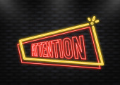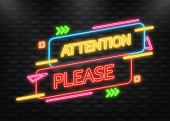 Uwaga, neonowy tekst na kamiennym tle. Proszę o uwagę. Dla biznesu, marketingu i reklamy. Wektor na odosobnionym tle. EPS 10.