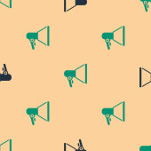 Zielony i czarny Megafon ikona izolowane bezszwowy wzór na beżowym tle. Znak mówcy. Wektor