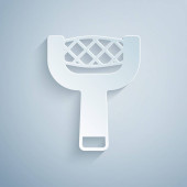 Papier wyciąć Ikona fotelika rowerowego izolowane na szarym tle. Siodło rowerowe. Papier w stylu sztuki. Wektor