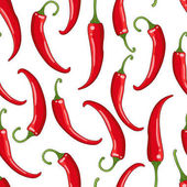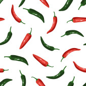Płynny wzór papryki chili - czerwony, żółty, zielony. Projekt szablonu do restauracji, żywności, opakowań, produktów rolnych. Może służyć do tapet, tła strony internetowej, tekstury powierzchni. Ilustracja wektora