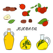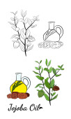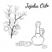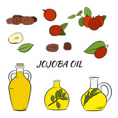 Zestaw ręcznie rysowane gałązki jojoba z owoców, kwiatów i liści. Kolekcja roślin Jojoba. Wektor ilustracji botanicznych. Elementy menu, etykiety, projekt opakowania.