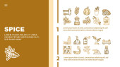 Przyprawa Ikony kolekcji żywności roślinnej zestaw wektor. Spice Vanilla Sticks And Cinnamon, Delicacy Taste Basil Leaves And Pietruszka, musztarda i Paprika Line Piktogramy. Ilustracje kolorów konturu