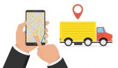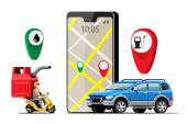 Duże odizolowane wektorowe kolorowe ikony pojazdu, płaskie ilustracje dostawy vanem przez lokalizacje GPS. pojazd dostawczy, gaz, benzyna, dostawa paliwa, dostawa natychmiastowa, dostawa online.