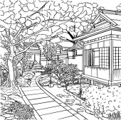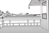 Brama na dziedziniec, Tokio, szkic, Japonia, Brama na dziedziniec, Tokio, szkic, Japonia