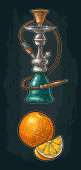 Hookah z brzoskwinią. Wektor vintage grawerowanie kolor