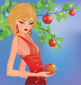 Jesienna dziewczyna. Karta pór roku. Ilustracja wektorowa