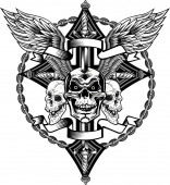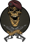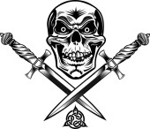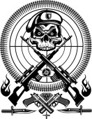 Etykieta. Czaszka i pistolet