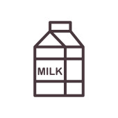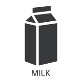Ikona mleka z napisem. Białe pudełko z mlekiem i szarym zarysem. Produkt wywołujący reakcję alergiczną. Ilustracja wektor izolowane na białym tle dla projektu i sieci.