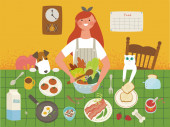 Zdjęcie "Świeże owoce i warzywa. Płaska konstrukcja styl wektor ilustracja." może być wykorzystywane do celów osobistych i komercyjnych zgodnie z warunkami zakupionej licencji Royalty-free. Obraz jest dostępny do pobrania w jakości wysokiej rozdzielczości do 5760x3840.