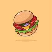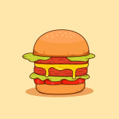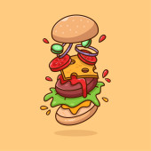 Cute Burger Fast Food tle Wektor ilustracji z orzeźwiających składników. Smaczny posiłek w stylu płaskim