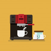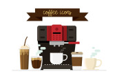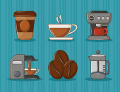 Ikony kawy i elementy ekspres do kawy na tle. ilustracja wektora