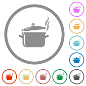 Garnek na parze z wieczkiem żywe kolorowe płaskie ikony w zakrzywionych granicach na białym tle