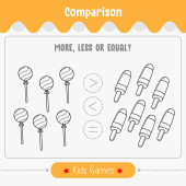 Porównanie gier matematycznych Liczba dla dzieci więcej, mniej lub równej edukacji matematycznej gry