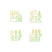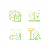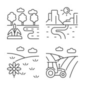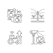 Zestaw ikon liniowych dla działalności rolniczej. Rolnictwo ekologiczne. Modernizacja gospodarstw rolnych i innowacje. Możliwość konfigurowania symboli cienkiej linii konturu. Izolowane ilustracje zarysu wektora. Udar edytowalny