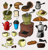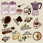 Ilustracja wektorowa różnych elementów kawy