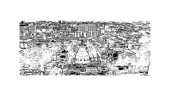 Drukuj Widok budynku z punktem orientacyjnym Jefferson jest miasto w Missouri. Ręcznie rysowany szkic ilustracji w wektorze.