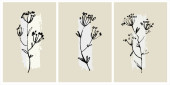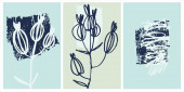 Dekoracja druku. Ręcznie rysowane wektorowe obrazy kwiatów na tle z tekstury pociągnięcia pędzla