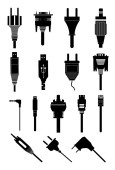 Ikony wtyczek i kabli wektor, energia elektryczna, energia