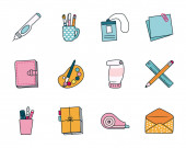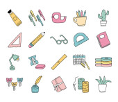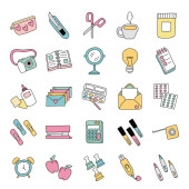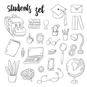 A collection of stickers for students. Hand drawing. Vector illustration. Cute cartoon style.