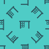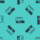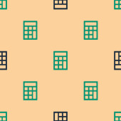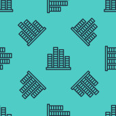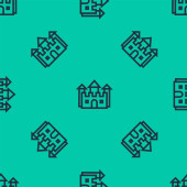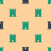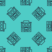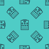 Czarna linia Wielopiętrowa ikona budynku odizolowana bezszwowy wzór na zielonym tle. Wektor