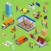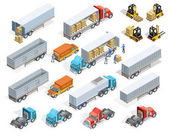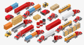 Izometryczne logistyka ikony zestaw różnych dystrybucji Transport, dostawy elementów. Transport ładunków na białym tle.
