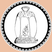 Doodle lantern, kerosene lamp in vintage style with lace. Silhouette of lamp hand drawn by pencil in black and white colors