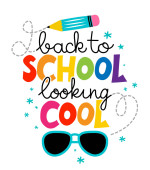 Wracam do szkoły i wyglądam super. Śmieszny slogan i ołówki. Nadaje się do druku koszulki, plakat, karta, etykieta, i inne dekoracje dla dzieci