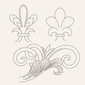 zbiór elementów projektu kaligraficzne rozkwitać, granic i ramki - fleur de lis