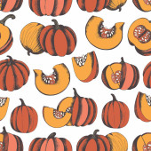 Zdjęcie "Płynny wzór z ręcznie rysowane doodle dynie i liście. Płaskie, kolorowe warzywa. Projekt na dzień dziękczynienia lub święto Halloween. Ilustracja wektora jesieni." może być wykorzystywane do celów osobistych i komercyjnych zgodnie z warunkami zakupionej licencji Royalty-free. Obraz jest dostępny do pobrania w jakości wysokiej rozdzielczości do 5760x3840.