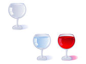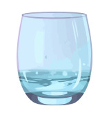 dwa naczynia szklane przezroczyste zaokrąglone. jeden pusty i jeden wypełnione wodą. okulary. akwarium. na białym tle.