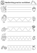 Zdjęcie "Wektor Święto Dziękczynienia arkusza ćwiczeń pisma ręcznego. Jesienią można wydrukować czarno-białe aktywności dla dzieci w wieku przedszkolnym. Jesień śledzenia gry do pisania umiejętności z cute indyków i zbiorów" może być wykorzystywane do celów osobistych i komercyjnych zgodnie z warunkami zakupionej licencji Royalty-free. Obraz jest dostępny do pobrania w jakości wysokiej rozdzielczości do 5760x3840.