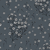 Kwiatowy bezszwowy wzór wyizolowany na białym. Tło z kwiatami. Element projektowy do tkanin, tekstyliów, tapet itp. Ilustracja wektora.