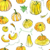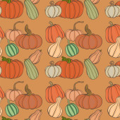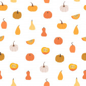 Wzór wektora dyni bez szwu. Święto Dziękczynienia lub halloween koncepcja dzień. Świetne na pocztówki, papier, tekstylia. Koncepcja jesienna i skład warzyw.