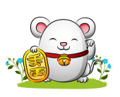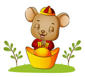 Słodka mysz trzyma złoty słoik yenpao w ogrodzie ilustracji