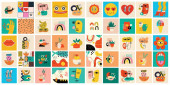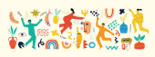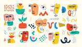 Zestaw ręcznie rysowane różne twarze, kształty i obiekty bazgroły. Abstrakcyjny współczesny wektor ilustracji.