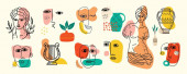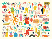 Zdjęcie "Zestaw ręcznie rysowane różne twarze, kształty i obiekty bazgroły. Abstrakcyjny współczesny wektor ilustracji." może być wykorzystywane do celów osobistych i komercyjnych zgodnie z warunkami zakupionej licencji Royalty-free. Obraz jest dostępny do pobrania w jakości wysokiej rozdzielczości do 5760x3840.