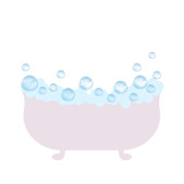 Wanna z mydłem z pianą i szamponem bańki mydlane izolowane relaksu i symbol spa. Vector domu lub domu akcesoria toaletowe, meble łazienkowe obiektu. Pranie i higiena, kąpiel i prysznic