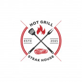 Hot grill steak house vintage projekty logo, mięso grill restauracja wektor rustykalny ilustracja
