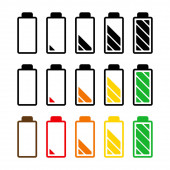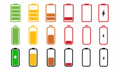 Ikona poziomu naładowania akumulatora. Symbol wskaźnika zasilania akumulatora telefonu komórkowego. Prosta płaska konstrukcja. Ilustracja wektora izolowana na białym.
