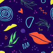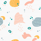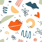 Płynny wzór z abstrakcyjnymi organicznymi kształtami, plamami, liniami. Kolorowe elementy wektorowe w stylu doodle dla tła, tapety, tkaniny, okładka, baner, karta. Prosty, zabawny projekt. Nowoczesna grafika na wakacje. Modne teksturowane tło.