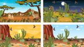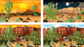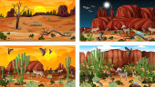 Zdjęcie "Różne sceny z pustynnym krajobrazem lasu ze zwierzętami i roślinami ilustracja" może być wykorzystywane do celów osobistych i komercyjnych zgodnie z warunkami zakupionej licencji Royalty-free. Obraz jest dostępny do pobrania w jakości wysokiej rozdzielczości do 5760x3840.