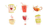 Cute ręcznie rysowane kubek lub kubek do picia zestaw wektor herbaty