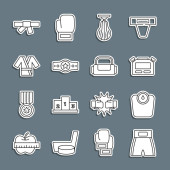 Zestaw spodnie linii, T-shirt, Sport skarpety, azjatycki stożkowy kapelusz, torba, Long sleeve i ikona Biustonosz. Wektor