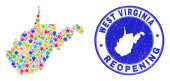 West Virginia Distress Seal i Ceara State Map Kolaż różnych symboli